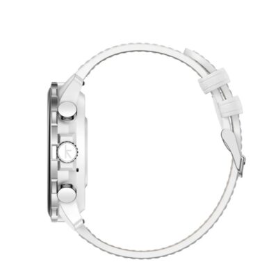 Kr Ultra 3 nổi bật với khung viền và nút bấm được làm từ thép không gỉ, mang lại vẻ đẹp cao cấp, sang trọng cùng độ bền vượt trội. Chất liệu này giúp đồng hồ chống chịu tốt trước những va đập và hao mòn, lý tưởng cho mọi hoạt động hàng ngày. Đồng hồ mang đậm phong cách tối giản, hiện đại với thiết kế thân màu trắng, dây đeo trắng.