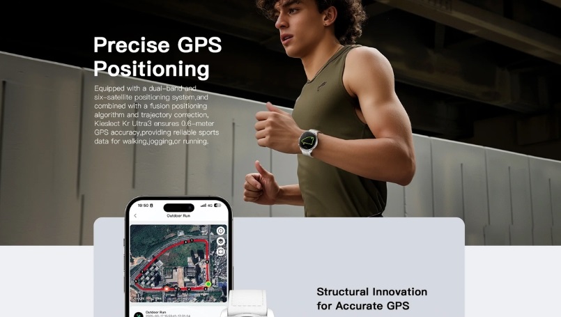 Đồng hồ thông minh Kr Ultra 3 có thiết kế đột phá. Khi biến khung viền kim loại thành một ăng-ten tích hợp. Giúp tăng cường tín hiệu và bắt sóng GPS nhanh chóng ngay cả ở những khu vực có nhiều tòa nhà cao tầng. Kết hợp với hệ thống định vị băng tần kép cùng các thuật toán tiên tiến. Đồng hồ đảm bảo độ chính xác lên tới 0.6 mét, cung cấp dữ liệu thể thao cho mọi hoạt động như đi bộ, chạy bộ hay chạy.