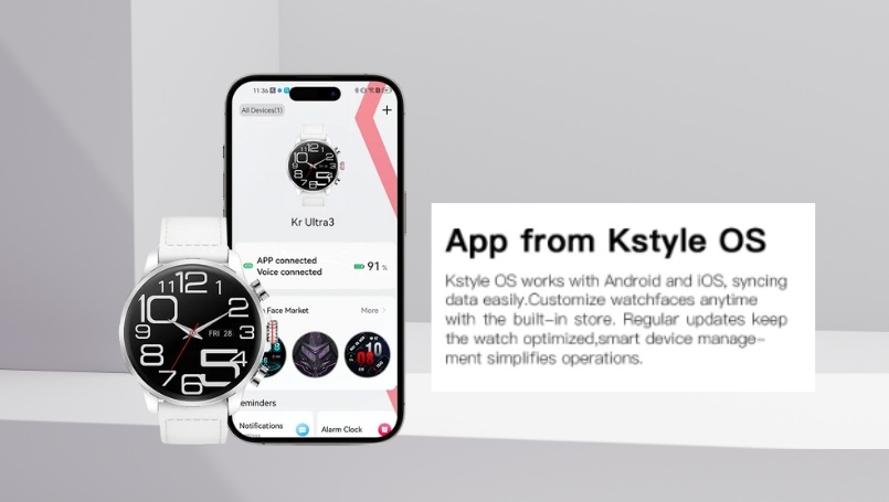 Hệ điều hành Kstyle OS hoạt động mượt mà trên cả điện thoại Android và iOS. Dễ dàng đồng bộ hóa dữ liệu. Bạn có thể tùy chỉnh mặt đồng hồ Kieslect Kr Ultra 3 bất cứ lúc nào với kho giao diện tích hợp sẵn. Các bản cập nhật thường xuyên sẽ giúp đồng hồ luôn được tối ưu. Việc quản lý thiết bị cũng trở nên đơn giản hơn.